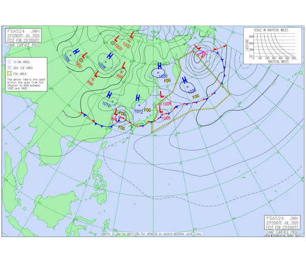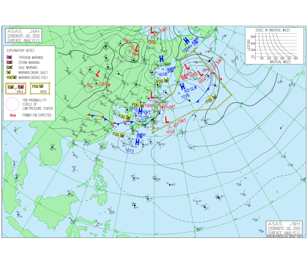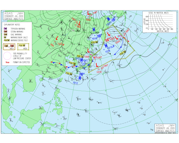 「2020.07.22.6:00のアジア太平洋域天気図」気象庁HPより