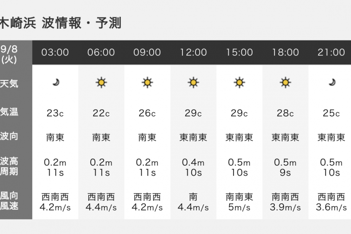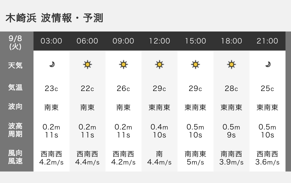 うねり:南東4.4m(11.0s)、風:南南西9.0m/s
