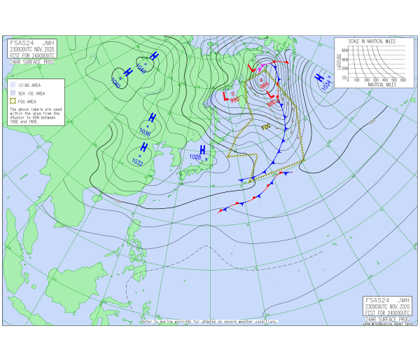 「2020.11.24.9:00のアジア太平洋域予想天気図」気象庁HPより