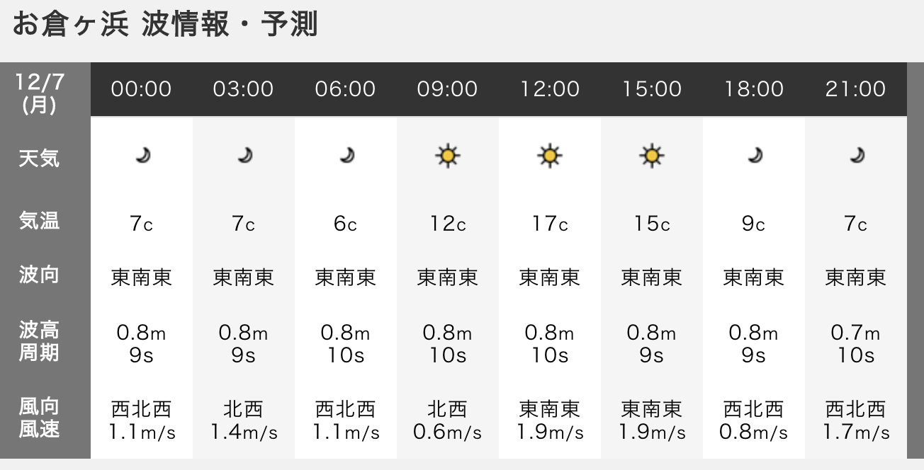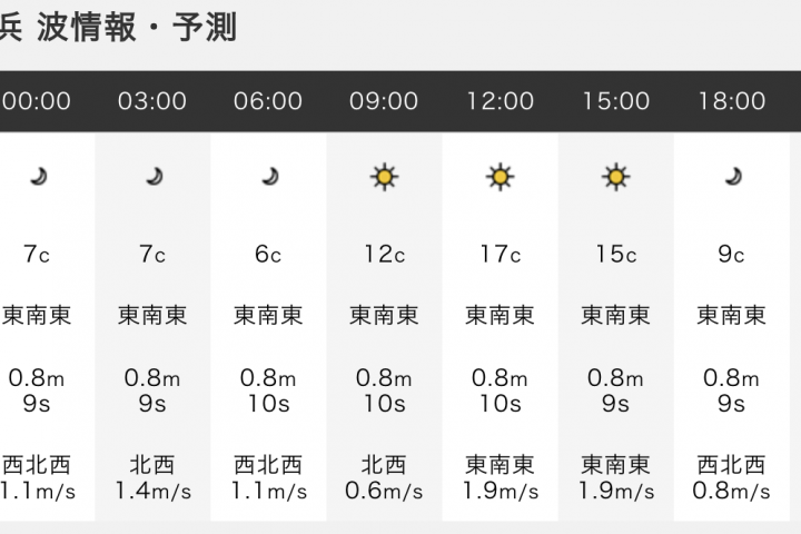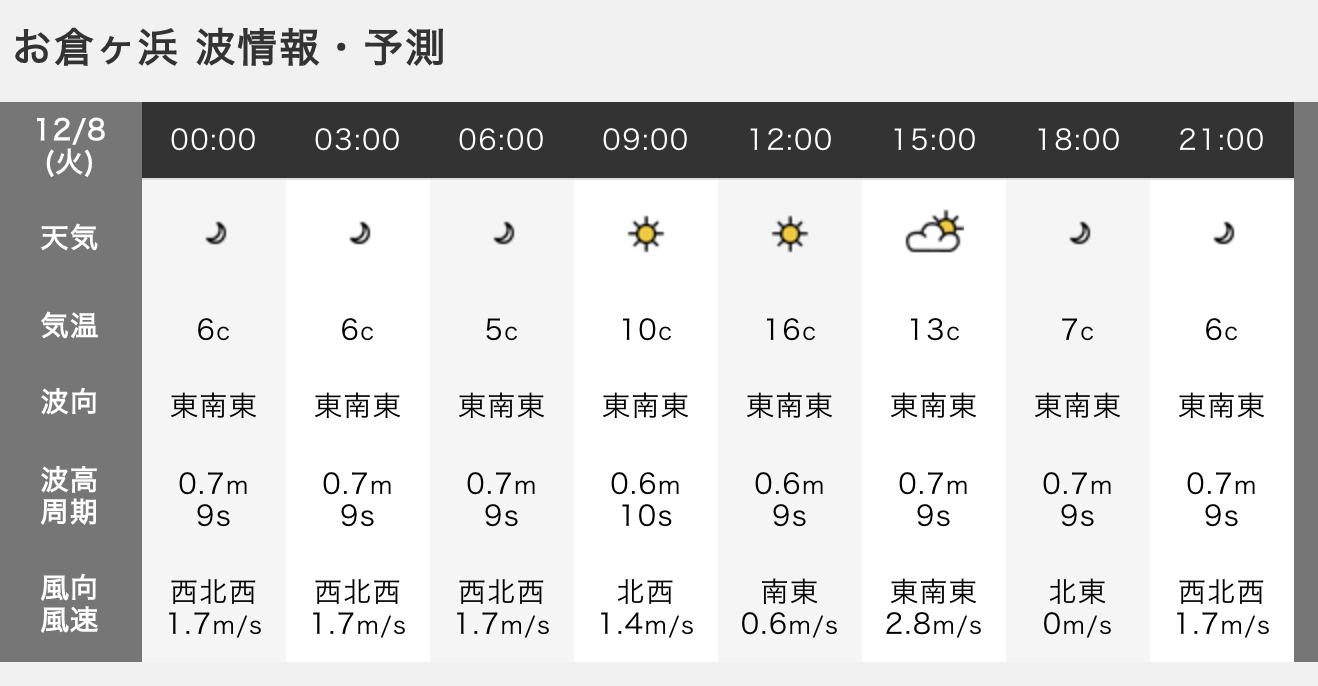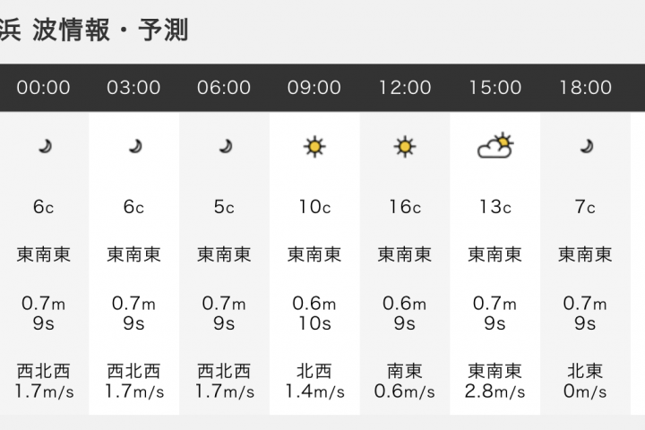 うねり:東北東1.0m(5.2s)、風:北5.5m/s