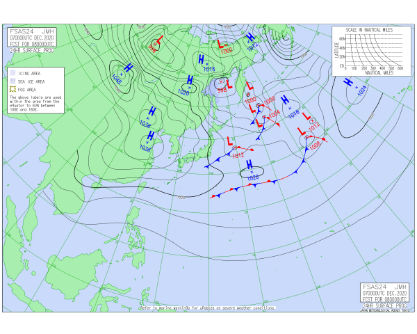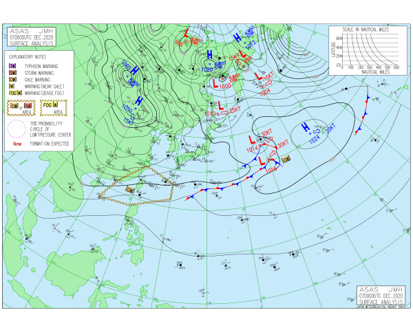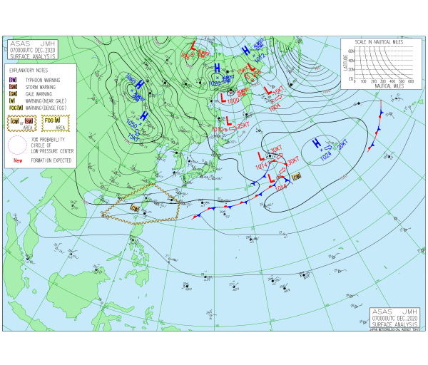 「2020.12.07 6:00のアジア太平洋域天気図」気象庁HPより