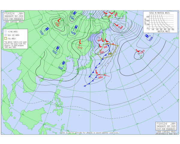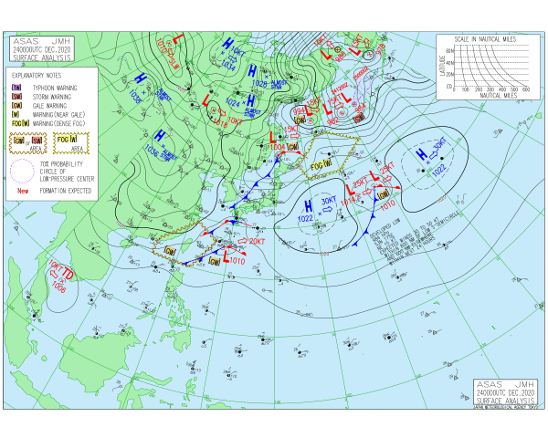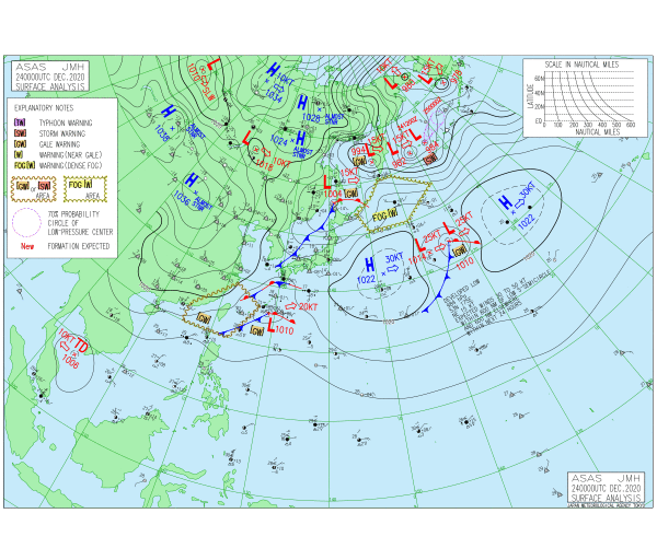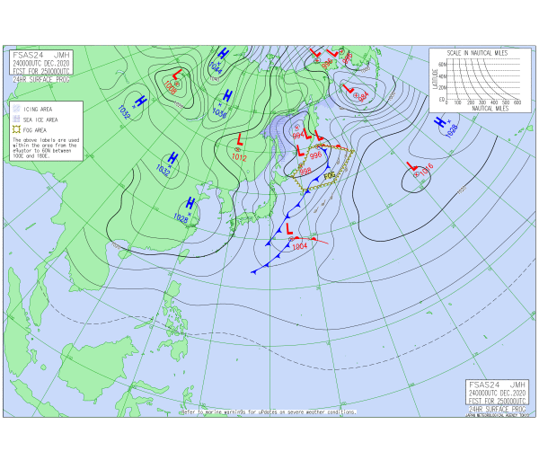 「2020.12.24 6:00のアジア太平洋域天気図」気象庁HPより