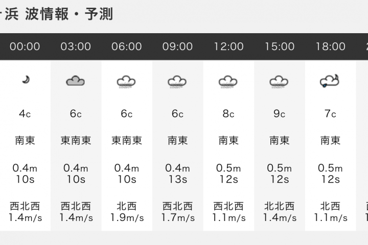 うねり:東南東0.4m(11.0s)、風:西1.9m/s