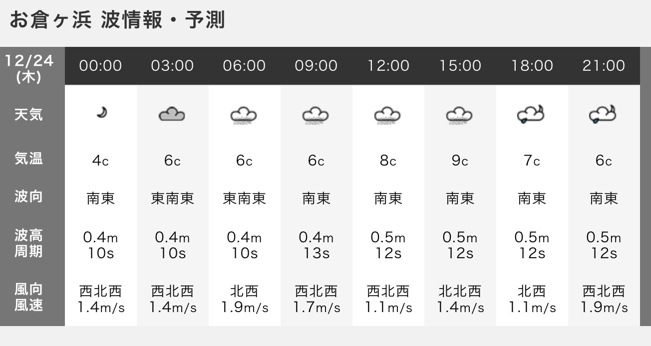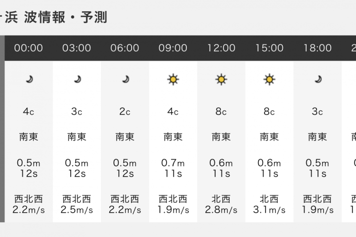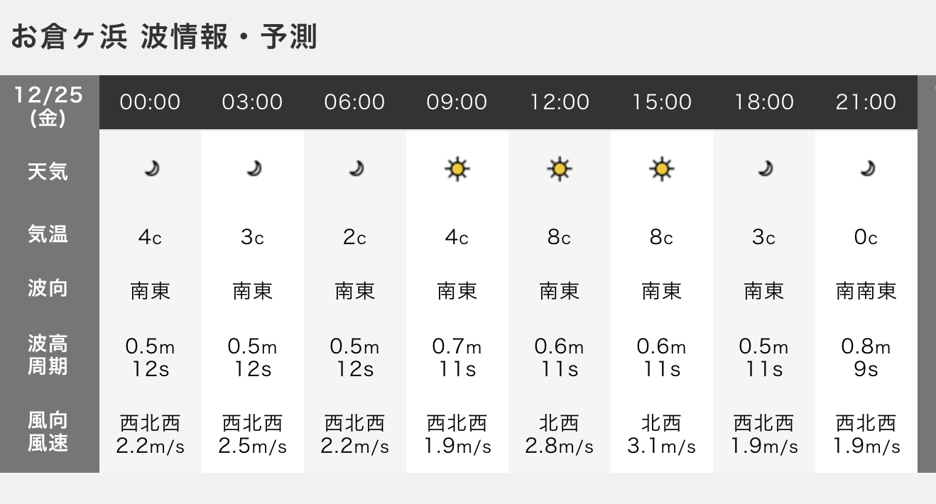 うねり:南南東0.6m(12.0s)、風:西2.2m/s