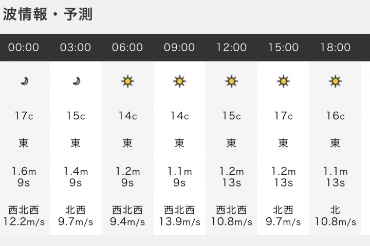 うねり:東1.2m(9.0s)