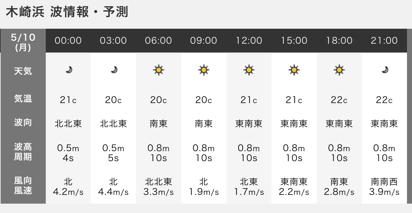 うねり:南東0.7m(10.0s)、風:北北西5.6m/s