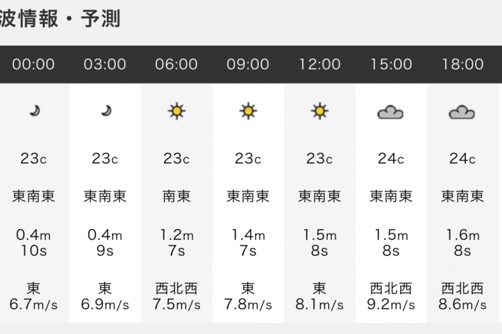 うねり:東南0.8m(7.0s)、風:東6.7m/s