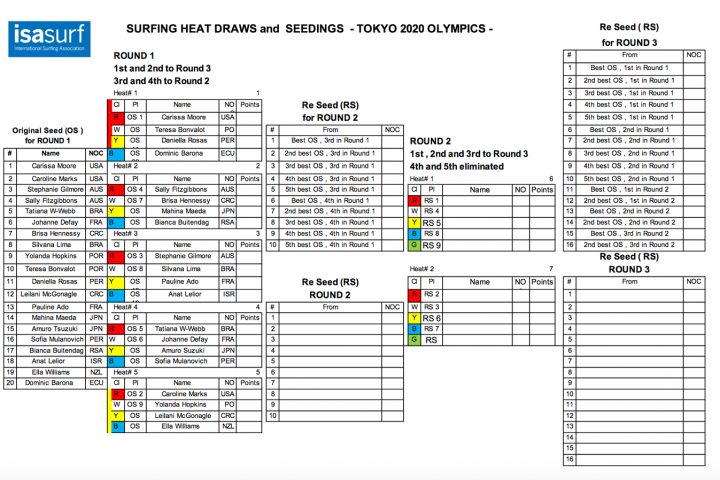 オリンピックサーフィン競技のヒート表&フォーマットが発表!!