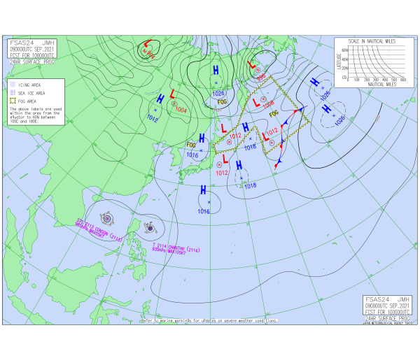 「2021.09.10 9:00のアジア太平洋域予想天気図」