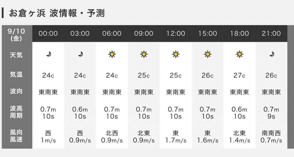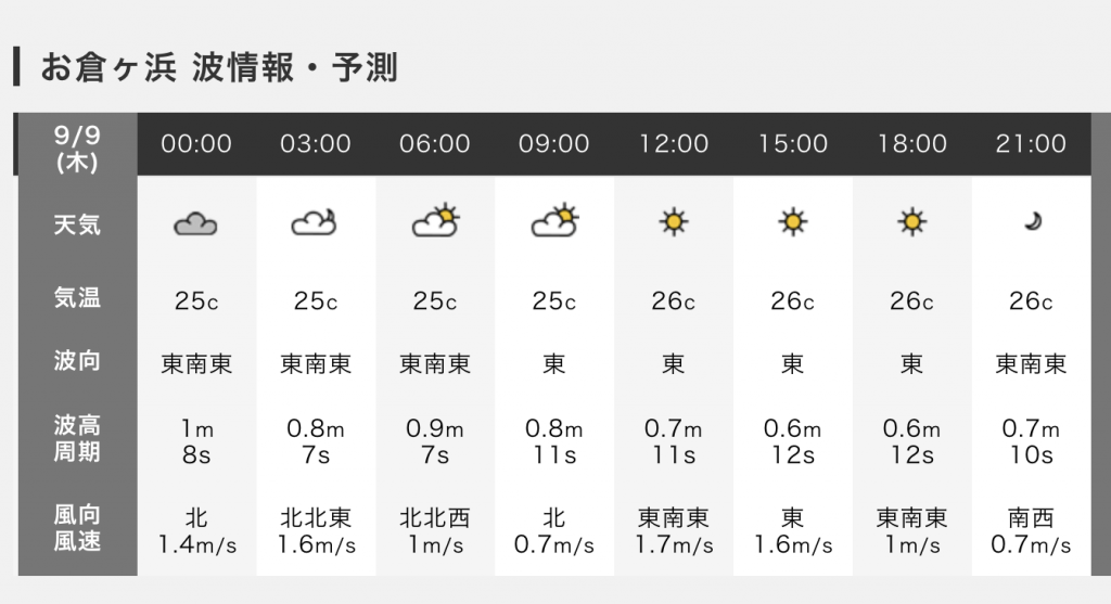 うねり東南東0.7m(7s)、風:北1.0m/s