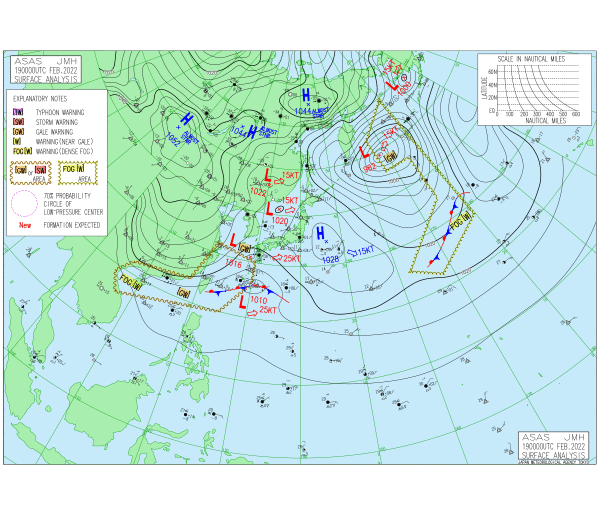 「2022.02.19 9:00のアジア太平洋域天気図」
