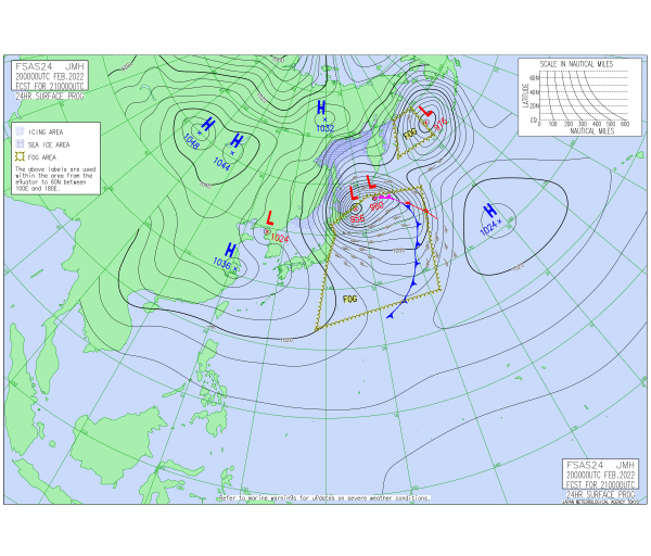 「2022.02.21 9:00のアジア太平洋域予想天気図」