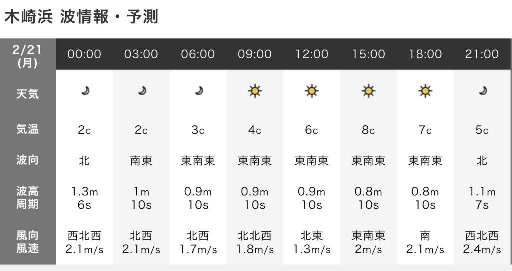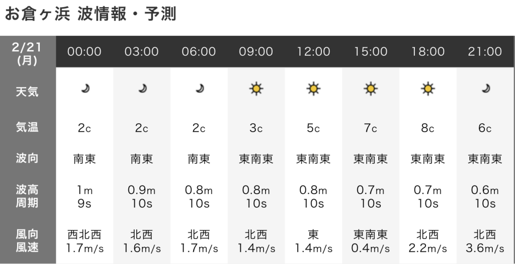 うねり:東南東0.8m(4.0s)