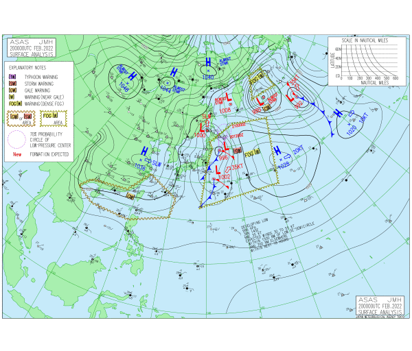 「2022.02.20 9:00のアジア太平洋域天気図」