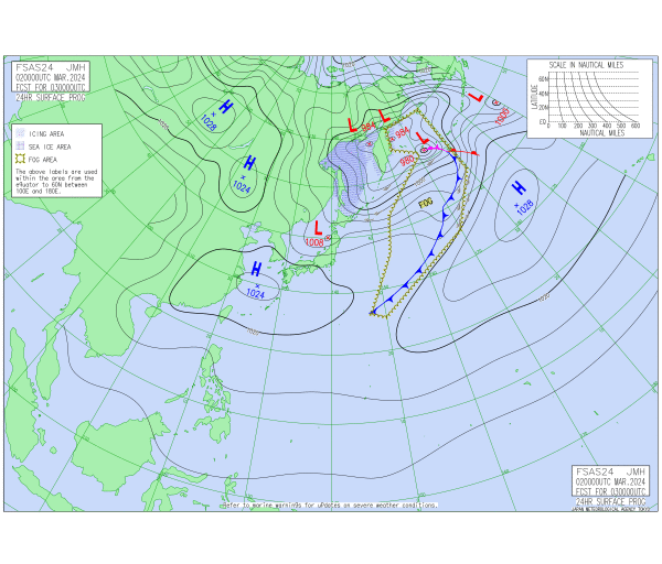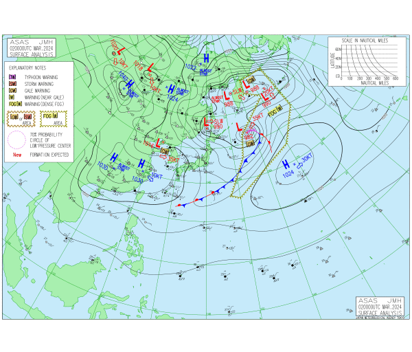 「2024.03.02 9:00のアジア太平洋域天気図」