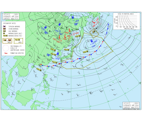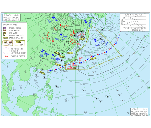 「2024.04.08 9:00のアジア太平洋域天気図」