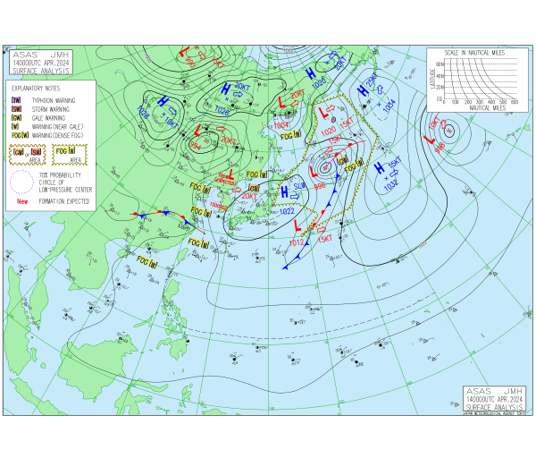 「2024.04.14 9:00のアジア太平洋域天気図」