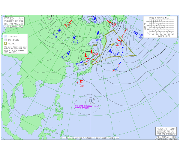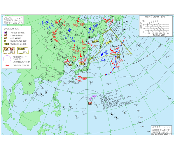 「2024.08.22 9:00のアジア太平洋域天気図」