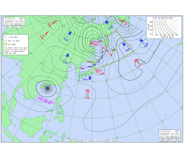 「2024.09.06 9:00のアジア太平洋域予想天気図」