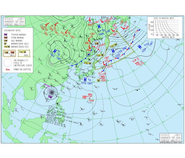 「2024.09.05 9:00のアジア太平洋域天気図」