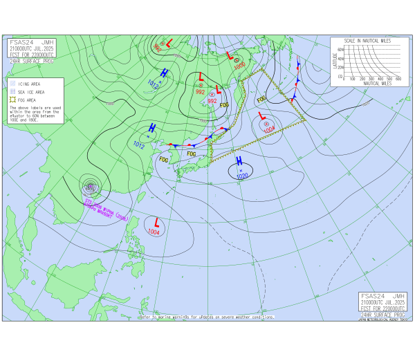 「2025.07.22 9:00のアジア太平洋域予想天気図」