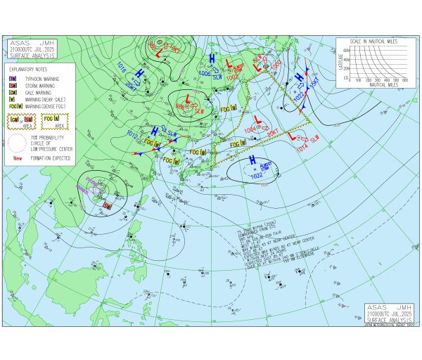 「2025.07.21 9:00のアジア太平洋域天気図」