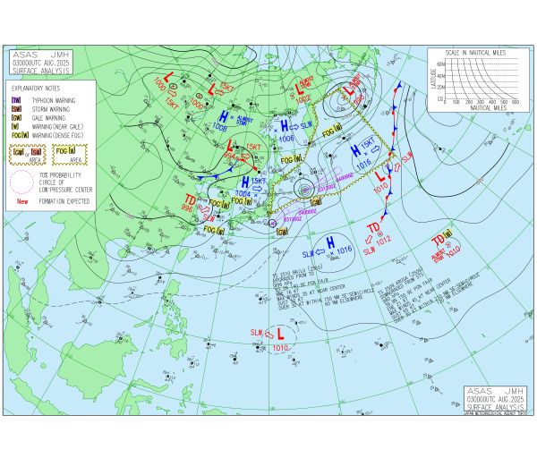 「2025.08.03 9:00のアジア太平洋域天気図」