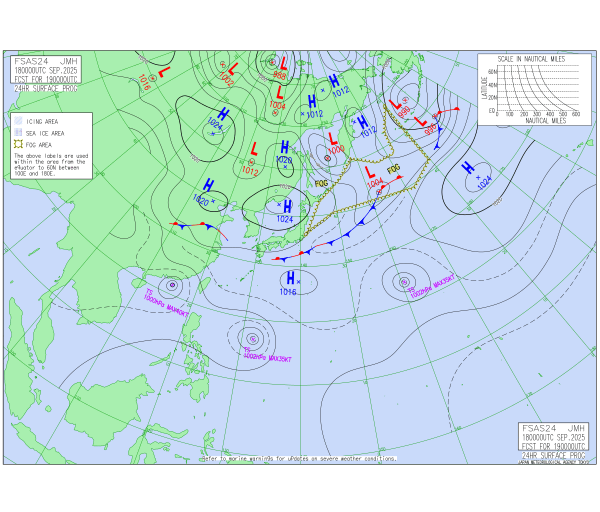 「2025.09.19 9:00のアジア太平洋域予想天気図」