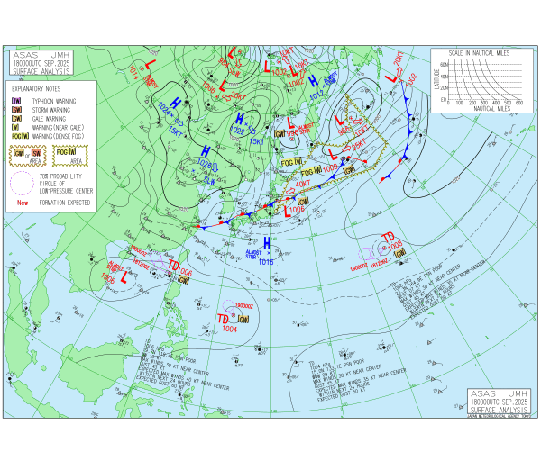 「2025.09.18 9:00のアジア太平洋域天気図」