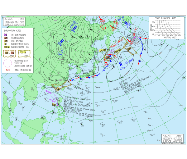 「2025.10.20 9:00のアジア太平洋域天気図」