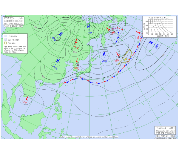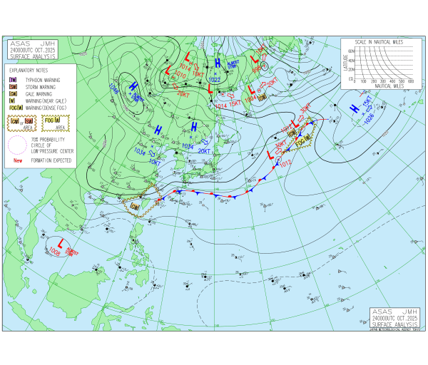 「2025.10.24 9:00のアジア太平洋域天気図」