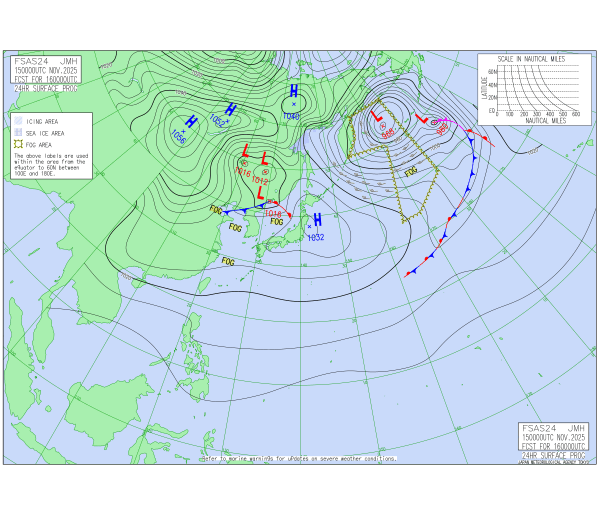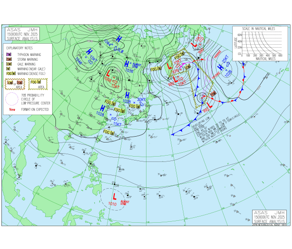 「2025.11.15 9:00のアジア太平洋域天気図」