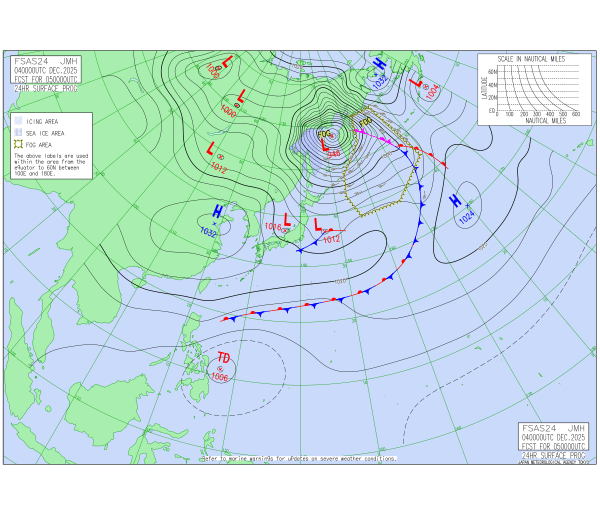 「2025.12.04 9:00のアジア太平洋域天気図」
