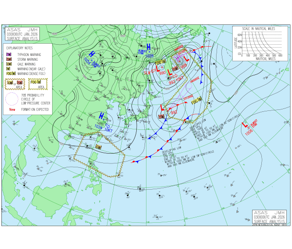 「2026.01.03 9:00のアジア太平洋域天気図」