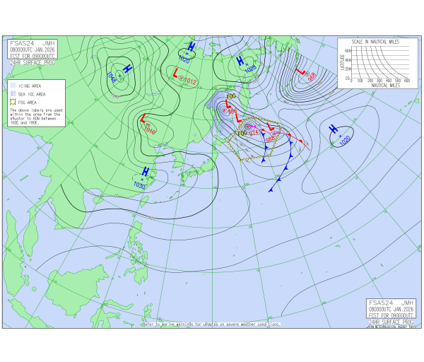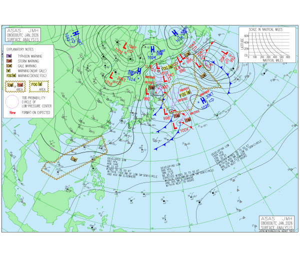 「2026.01.08 9:00のアジア太平洋域天気図」