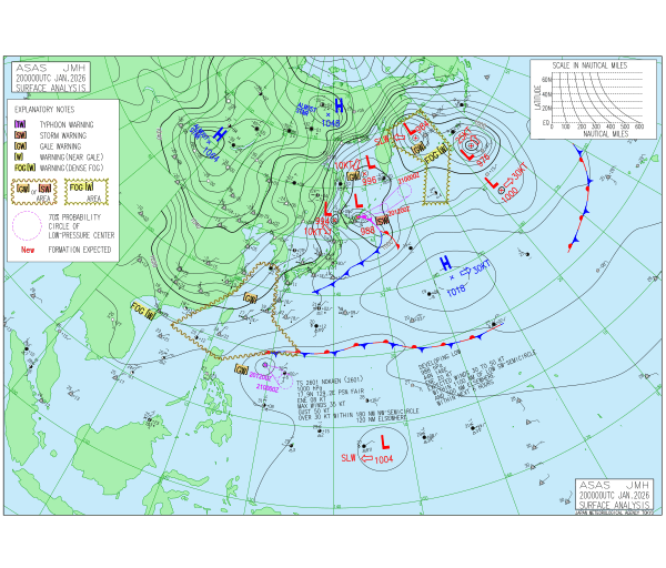 「2026.01.20 9:00のアジア太平洋域天気図」