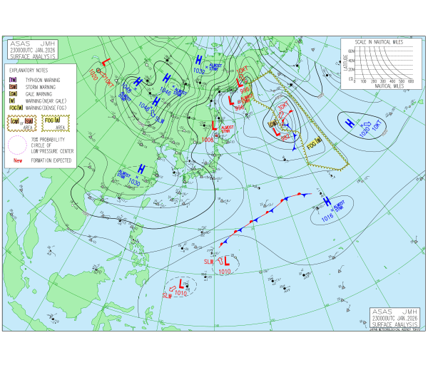 「2026.01.23 9:00のアジア太平洋域天気図」
