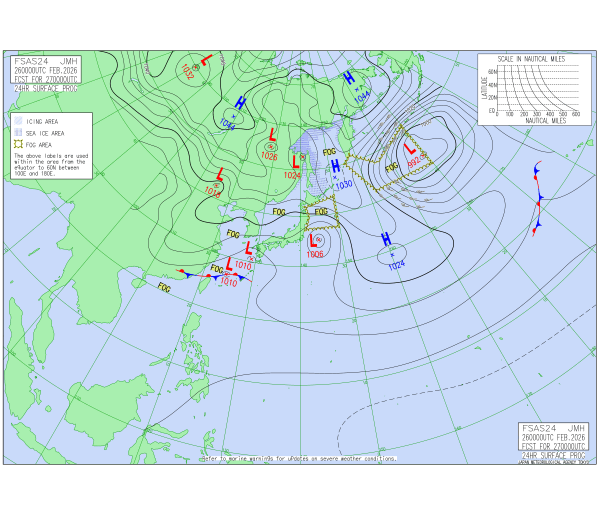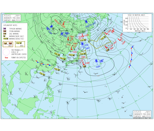 「2026.02.26 9:00のアジア太平洋域天気図」