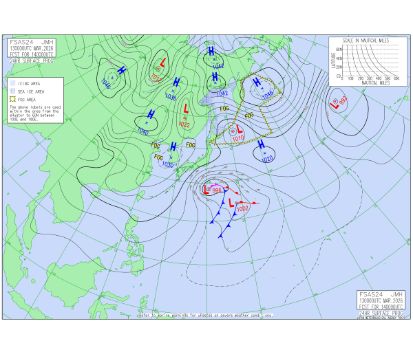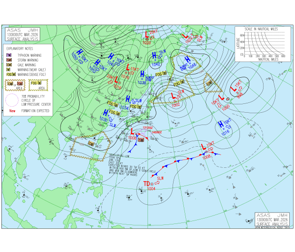「2026.03.13 9:00のアジア太平洋域天気図」
