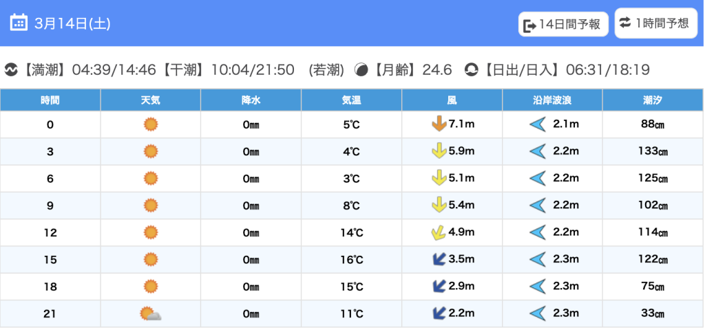 2026.03.14 木崎浜の朝の状況と今後の予想です!!