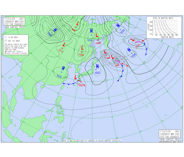 「2026.03.24 9:00のアジア太平洋域天気図」