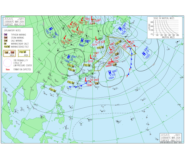 「2026.03.23 9:00のアジア太平洋域天気図」