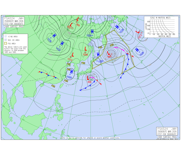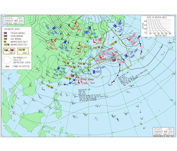「2026.03.25 9:00のアジア太平洋域天気図」