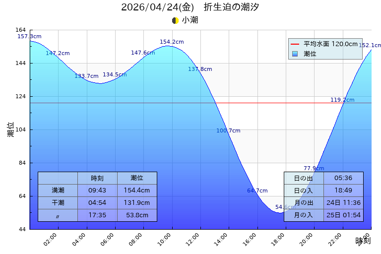 潮汐:小潮 干潮 04:54(131.9cm),17:35(53.8cm)、満潮 09:43(154.4cm)